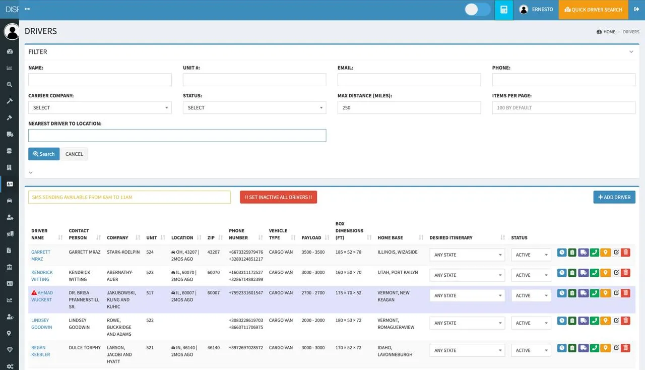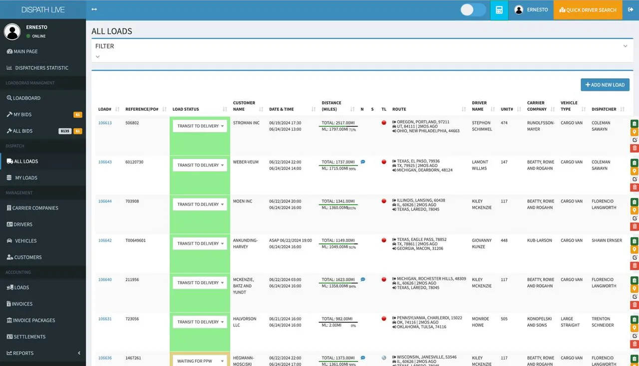 We developed a comprehensive logistics management system that automates dispatch, streamlines invoicing with alerts, tracks fuel usage for IFTA compliance, and includes a lone worker safety system. Additionally, it optimizes fleet management, route planning, and connects carriers with available loads, significantly enhancing operational efficiency and safety.